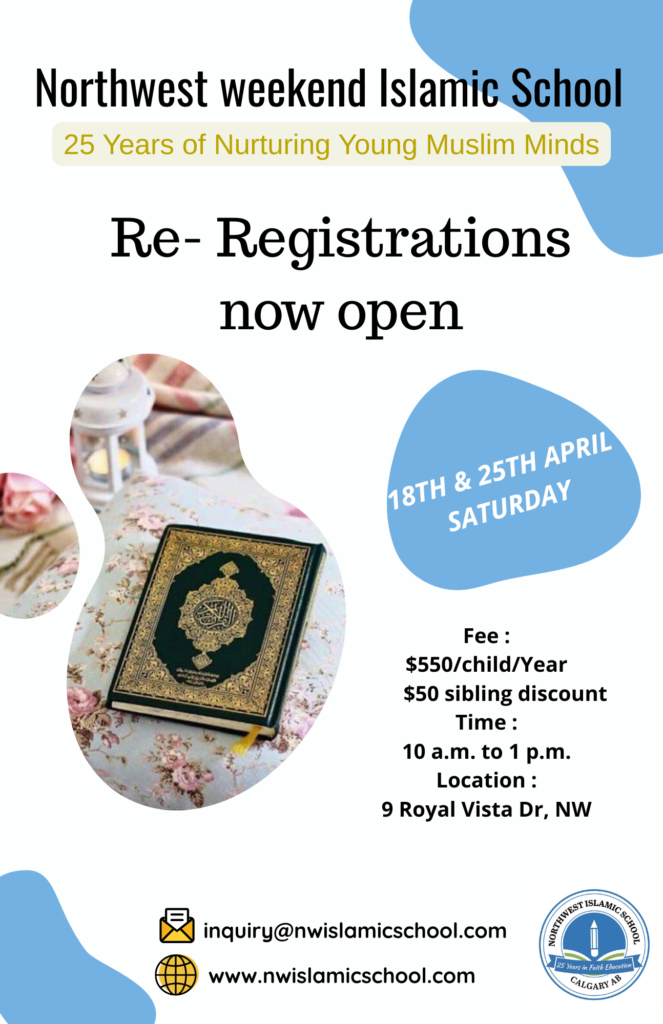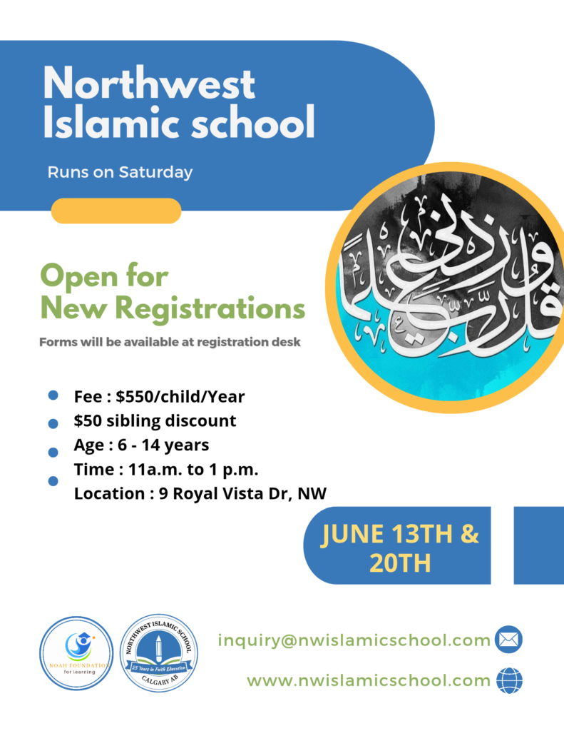 “NW Islamic school is in itself a community where Muslim kids from all 4 quadrants of the city come together to learn Islamic values and teachings. NW Islamic school was founded in 2002 by a couple who moved from Houston TX to Calgary and recognized the need for a weekend learning institute where their own kids could learn religion along with other Muslim children. NWIS started with 7 students, 2 of them being the founders’ daughters, and 5 other children. Today in 2023 after completing 20+ successful years NWIS has more than 300 students. NWIS is proud to be an Islamic school of various successful community leaders, doctors, engineers, lawyers, and corporate officials to name a few.”